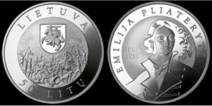 50 litų moneta, skirta 1831 m. sukilimui ir jo herojės Emilijos Pliaterytės 200-osioms gimimo metinėms. …