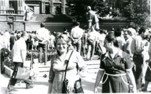 Genovaitė Šakalienė (centre) Lietuvos Laisvės Lygos organizuotame antisovietiniame mitinge prie A. Mickevičiaus paminklo. Vilnius, 1987 …