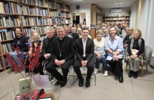 Susirinkusieji Trakų viešojoje bibliotekoje įsiamžino bendroje nuotraukoje kartu su Jo Ekscelencija Kauno arkivyskupu Kęstučiu Kėvalu …
